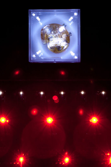Thumos (Heart-Impulse) is in line with the profoundization and development of communicational designs that set up the true symbolic dimension of biotechnology in all its forms. The world is beating in a different way and this produces a conception, which is also totally different from the surrounding scenario. The artificial element is slowly ceasing to compete with the natural element. There is a new and friendly approach of man to machines, which today not only aims to provide a better standard of living but at times it even aims to guarantee life itself. To give artificial life to religious images is to reinforce the concept of eternal departure, the concept of “being in the departure”.